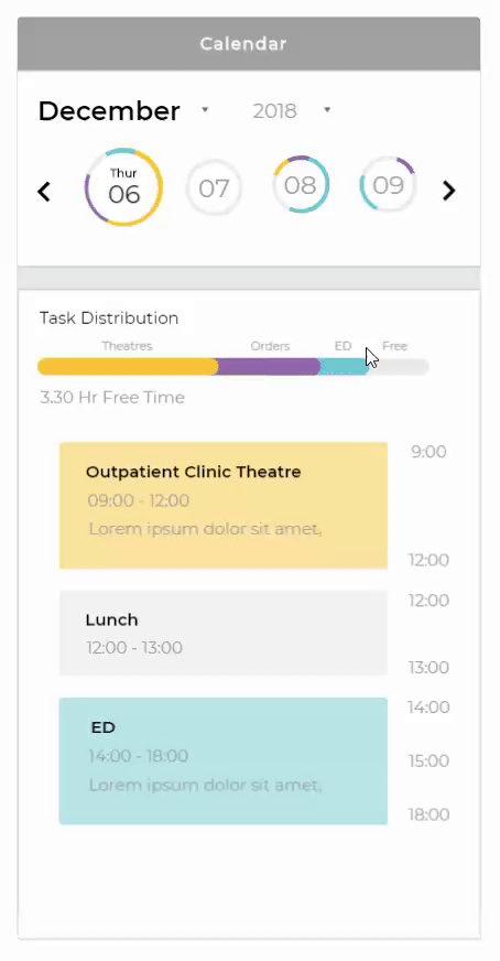 alendar concept to allow clinicians to track tasks and free time